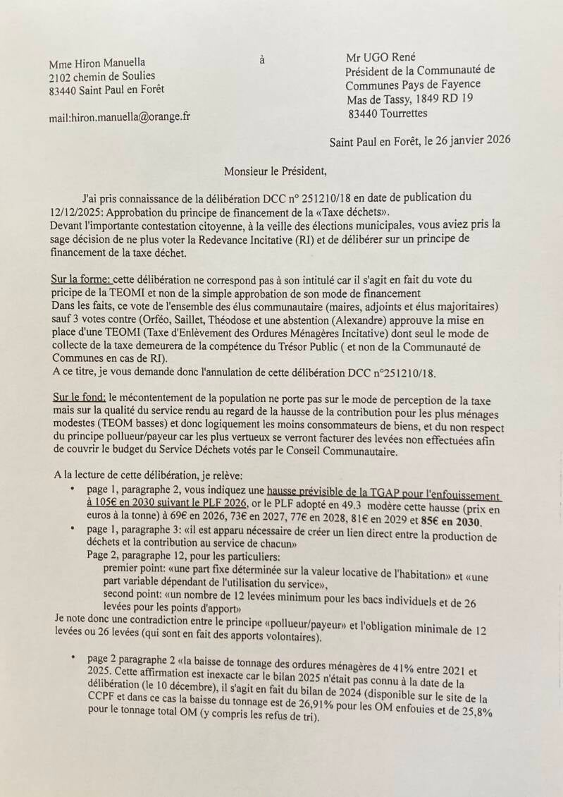 Puis vint le projet de vente du terrain communal public de la Chapelle, contre lequel nous avons fermement agi, allant jusqu’à déposer un recours contentieux auprès du Tribunal administratif de Toulon. Ce recours illustre notre volonté constante de protéger le patrimoine communal et de défendre l’intérêt collectif face aux décisions unilatérales du maire.